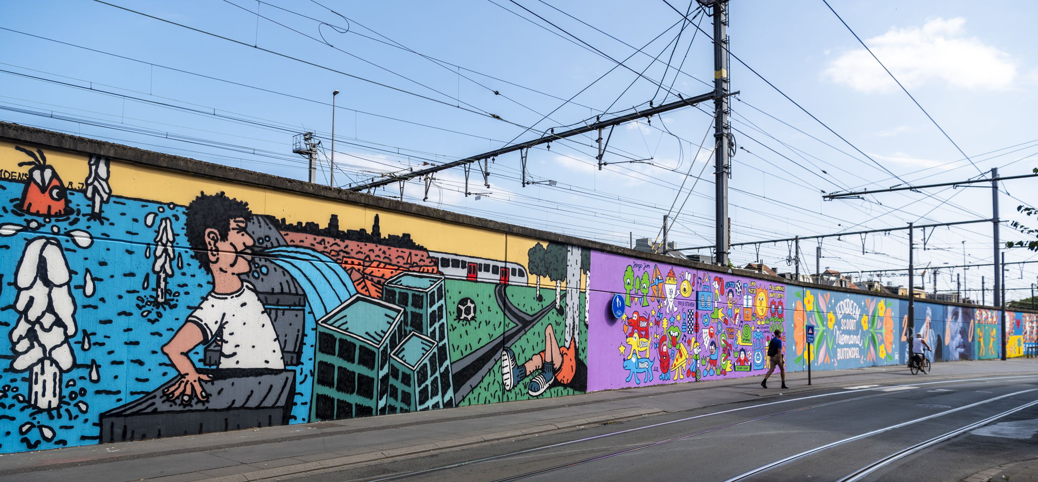 "De buurtbewoners konden de artiesten 3 dagen lang van dichtbij volgen en zagen de 70 meter lange betonmuur in recordtempo veranderen in een opvallende, kleurrijke eyecatcher. Met dit project zet district Antwerpen lokaal artistiek talent in de kijker en geeft het street art een mooi podium. Alle kunstenaars refereren in hun werk naar de buurt om het zo nog meer te verankeren in 2060", zegt Femke Meeusen (districtsschepen voor cultuur).