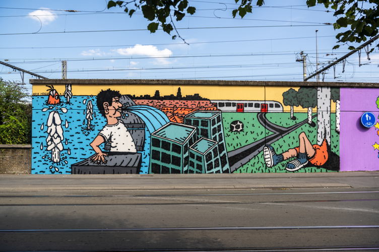 District Antwerpen zorgt voor nieuwe street art met maar liefst 4 muurschilderingen nabij Park Spoor Noord. In de Halenstraat zijn er 4 grote graffiti-werken aangebracht naast de reeds bestaande mural van Pink Painter die in 2023 gerealiseerd werd. De 70 meter lange spoorwegmuur werd afgelopen weekend omgevormd tot een openluchtgalerij met professionele muurschilderingen van lokale artiesten. Een kleurrijke blikvanger voor de buurt.
