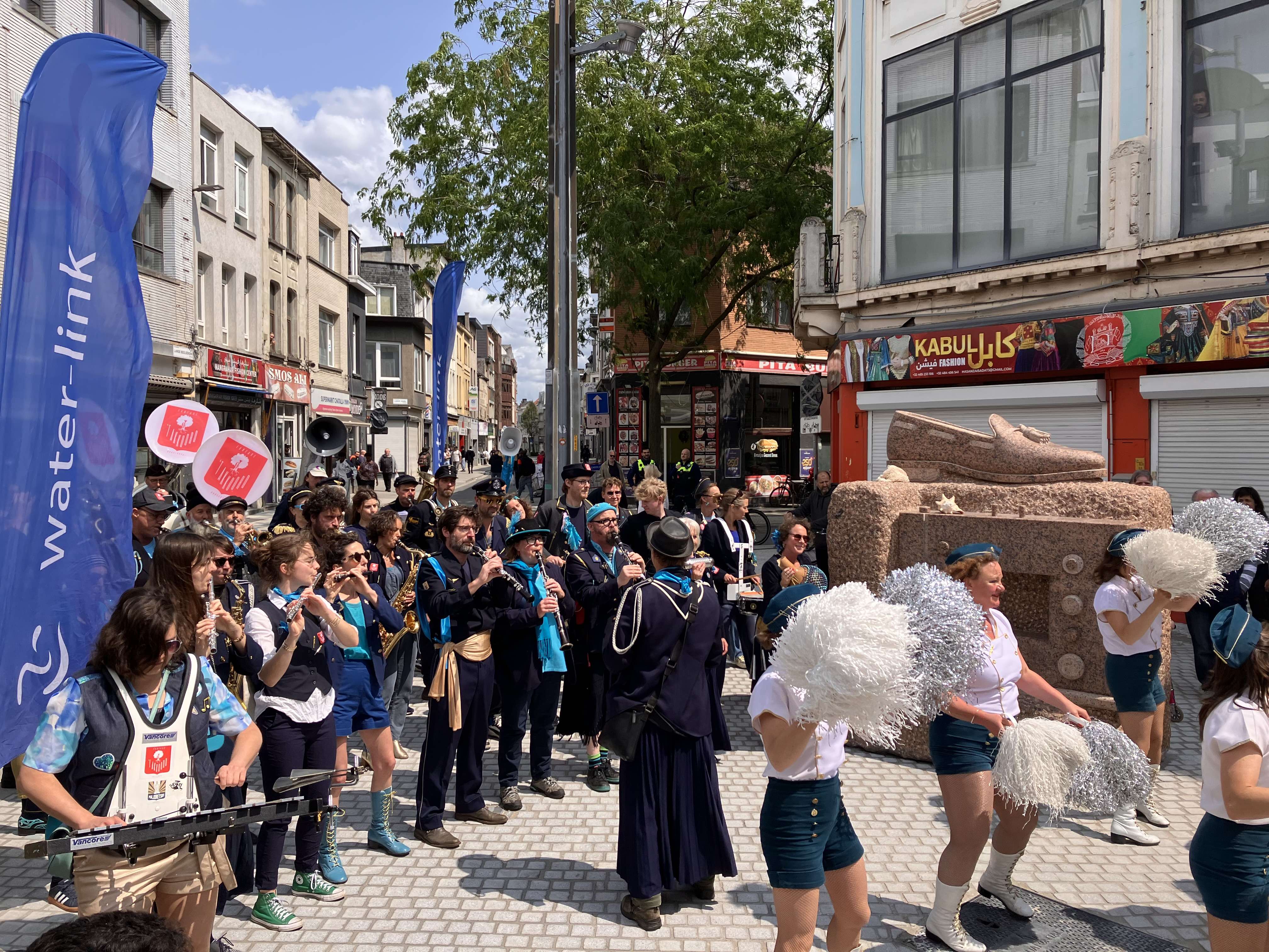Feestelijke opening Lange Beeldekensstraat met stoet en nieuw kunstwerk
